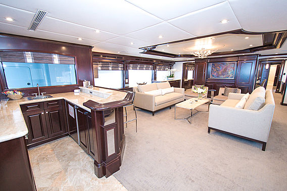 Nicole Evelyn features exterior design by Trinity Yachts and interior design by multiple designers (for instance Bonville Associates, see full list), with naval architecture by Trinity Yachts.